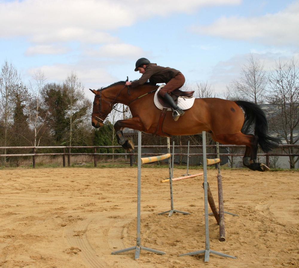 Perche est un très beau cheval. Il est souple avec de la force., de belles allures et un très bon niveau de dressage. Très respectueux sur les barres.