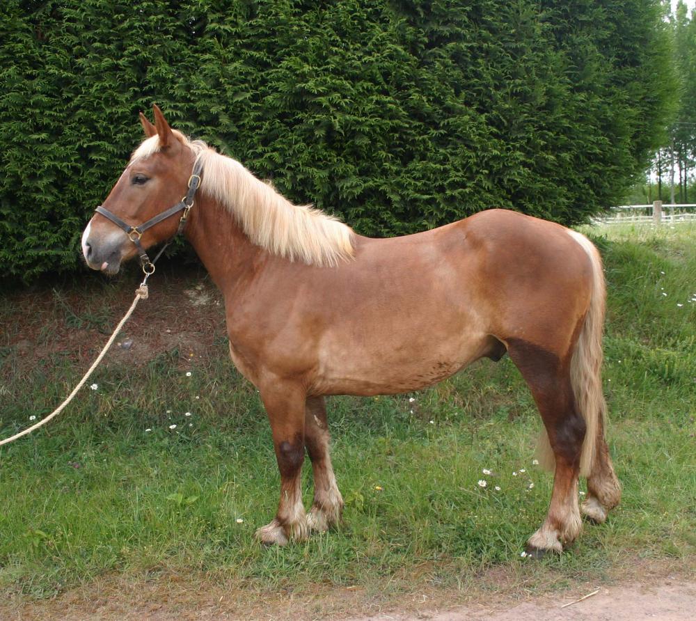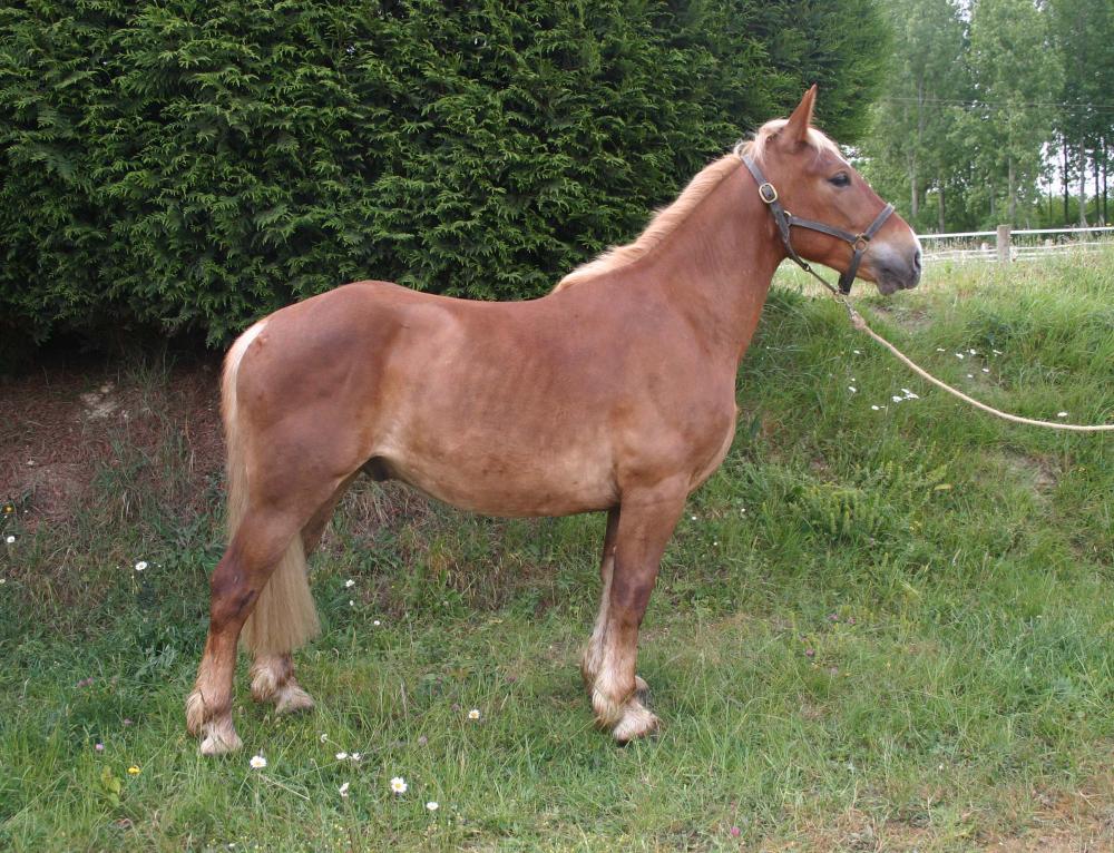 Très joli poney hongre de 5 ans, de taille 1,43m. Croisement cheval de trait et haflinger.