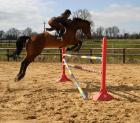 Perche est un très beau cheval. Il est souple avec de la force., de belles allures et un très bon niveau de dressage. Très respectueux sur les barres.